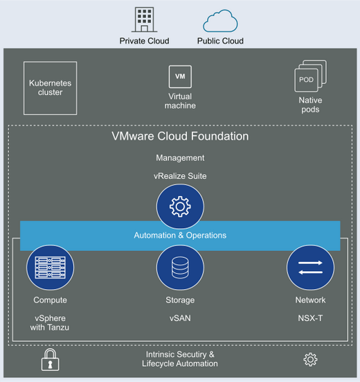 VMware Cloud Foundation™ provides a ubiquitous hybrid cloud platform for both traditional enterprise apps and modern apps. Based on a proven and comprehensive software-defined stack including VMware Cloud Foundation™ with VMware Tanzu™, VMware vSAN®, VMware NSX-T® Data Center, and VMware vRealize® Suite, VMware Cloud Foundation provides a complete set of software-defined services for compute, storage, network security, Kubernetes management, and cloud management.